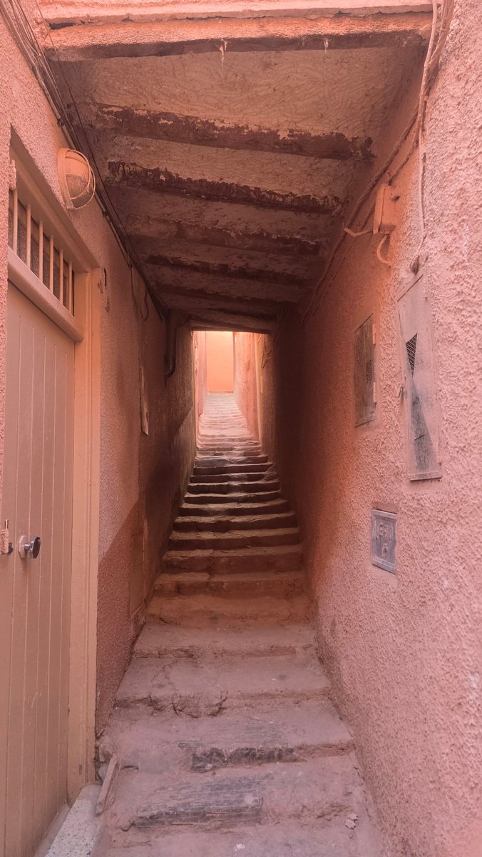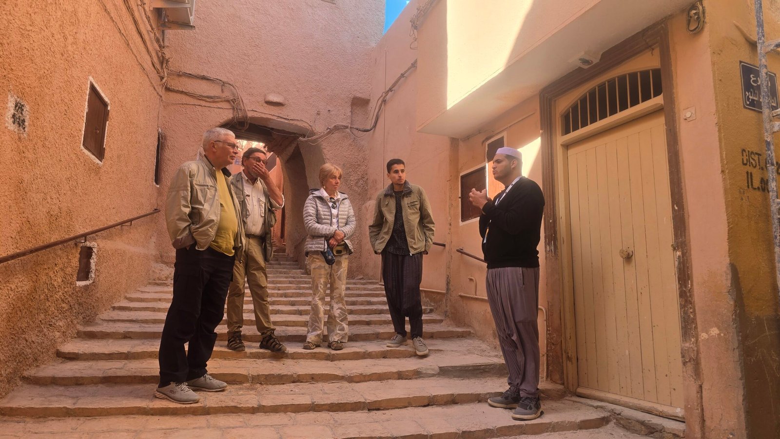 Morning light reveals the stunning geometry of Ghardaia. After a breakfast of fresh bread, local honey, and sweet mint tea, you dive into the city's vibrant soul at the central market. This is a symphony of senses: the scent of spices, the vibrant colors of handwoven textiles, the quiet chatter of daily commerce. Daoud helps you navigate, introducing you to artisan potters and silversmiths. Next, you step into the ancient ksar itself. Wandering its narrow, shaded alleys, Daoud decodes the ingenious architecture—how every lane curves to block the wind, how homes are designed for community and coolness. The highlight is a traditional lunch in a local home, a rare and intimate experience of true Mozabite hospitality. The day culminates with a climb to the hill of Tafilalt to watch the sunset wash over the valley, transforming the white and ochre buildings into a golden masterpiece.
